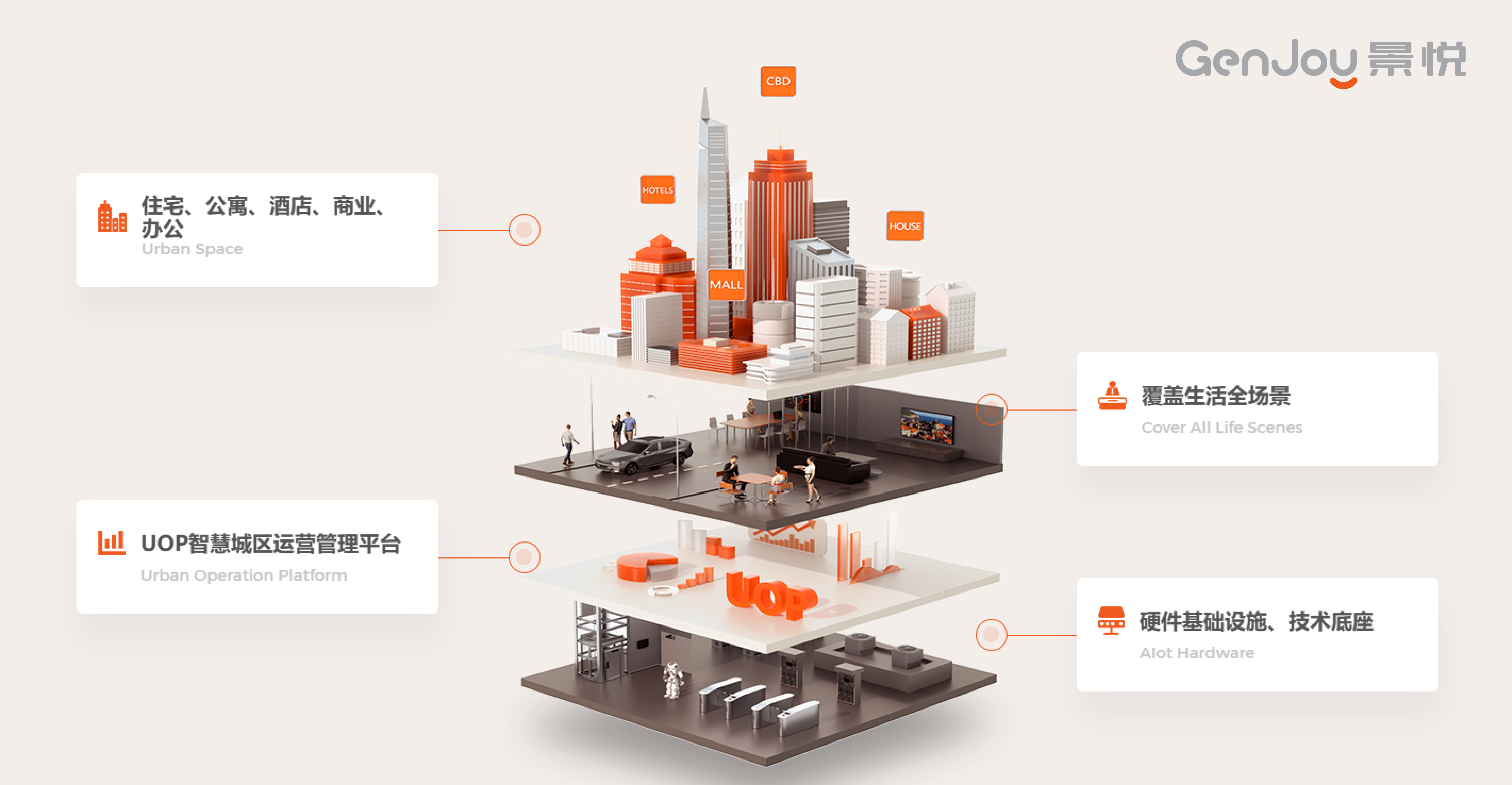 景悅科技UOP智慧城(chéng)區(qū)運營管理(lǐ)平台,一套服務于城(chéng)區(qū)全層級用(yòng)戶的(de)管理(lǐ)系統。通(tōng)過5G、AI、雲計算(suàn)、大(dà)數據等各類技術的(de)融合應用(yòng),深度了(le)解城(chéng)區(qū)用(yòng)戶需求,實現城(chéng)區(qū)數據價值最大(dà)化(huà)。